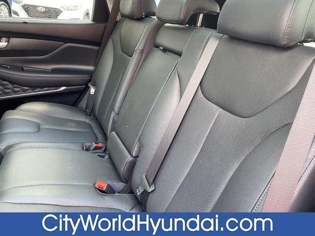 2020 Hyundai Santa Fe Limited 2.0T AWD, Black Leather. Option Group 01, AWD, Black Leather, 12 Speakers, 4-Wheel Disc Brakes, ABS brakes, Air Conditioning, Alloy wheels, AM/FM radio: SiriusXM, Apple CarPlay & Android Auto, Auto High-beam Headlights, Auto-dimming Rear-View mirror, Automatic temperatu re control, Axle Ratio 3.510, Brake assist, Bumpers: body-color, Cargo Cover, Cargo Net, Cargo Tray, Carpeted Floor Mats, Compass, Delay-off headlights, Driver door bin, Driver vanity mirror, Dual front impact airbags, Dual front side impact airbags, Electronic Stability Control, Emergency communication system: Blue Link, Four wheel independent suspension, Front anti-roll bar, Front Bucket Seats, Front Center Armrest, Front dual zone A/C, Front fog lights, Front reading lights, Fully automatic headlights, Garage door transmitter: HomeLink, Heads-Up Display, Heated & Ventilated Front Bucket Seats, Heated door mirrors, Heated front seats, Heated rear seats, Heated steering wheel, Illuminated entry, Leather Seating Surface, Leather Shift Knob, Leather steering wheel, Low tire pressure warning, Memory seat, Mudguards, Navigation System, Occupant sensing airbag, Outside temperature display, Overhead airbag, Overhead console, Panic alarm, Passenger door bin, Passenger vanity mirror, Power door mirrors, Power driver seat, Power Liftgate, Power moonroof, Power passenger seat, Power steering, Power windows, Radio: Infinity Premium AM/FM/MP3 Display Audio, Rain sensing wipers, Rear anti-roll bar, Rear Parking Sensors, Rear seat center armrest, Rear window defroster, Rear window wiper, Remote keyless entry, Roof rack: rails only, Security system, Speed control, Speed-sensing steering, Split folding rear seat, Spoiler, Steering wheel mounted audio controls, Sun blinds, Tachometer, Telescoping steering wheel, Tilt steering wheel, Traction control, Trip computer, Turn signal indicator mirrors, Variably intermittent wipers, Ventilated front seats, and Wheels: 19 x 7.5J Alloy. For this